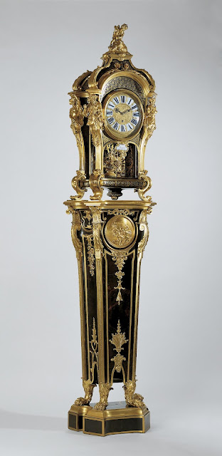 Nearby, you can see an example from the Wallace's own collection of the sort of opulent timepiece that inspired Hall, with its ebony and metal marquetry. It's also a case of animating an inanimate object, with, for example, the statuettes around the face that represent the four continents known at the time and the highly worked paws that raise the case off its pedestal.